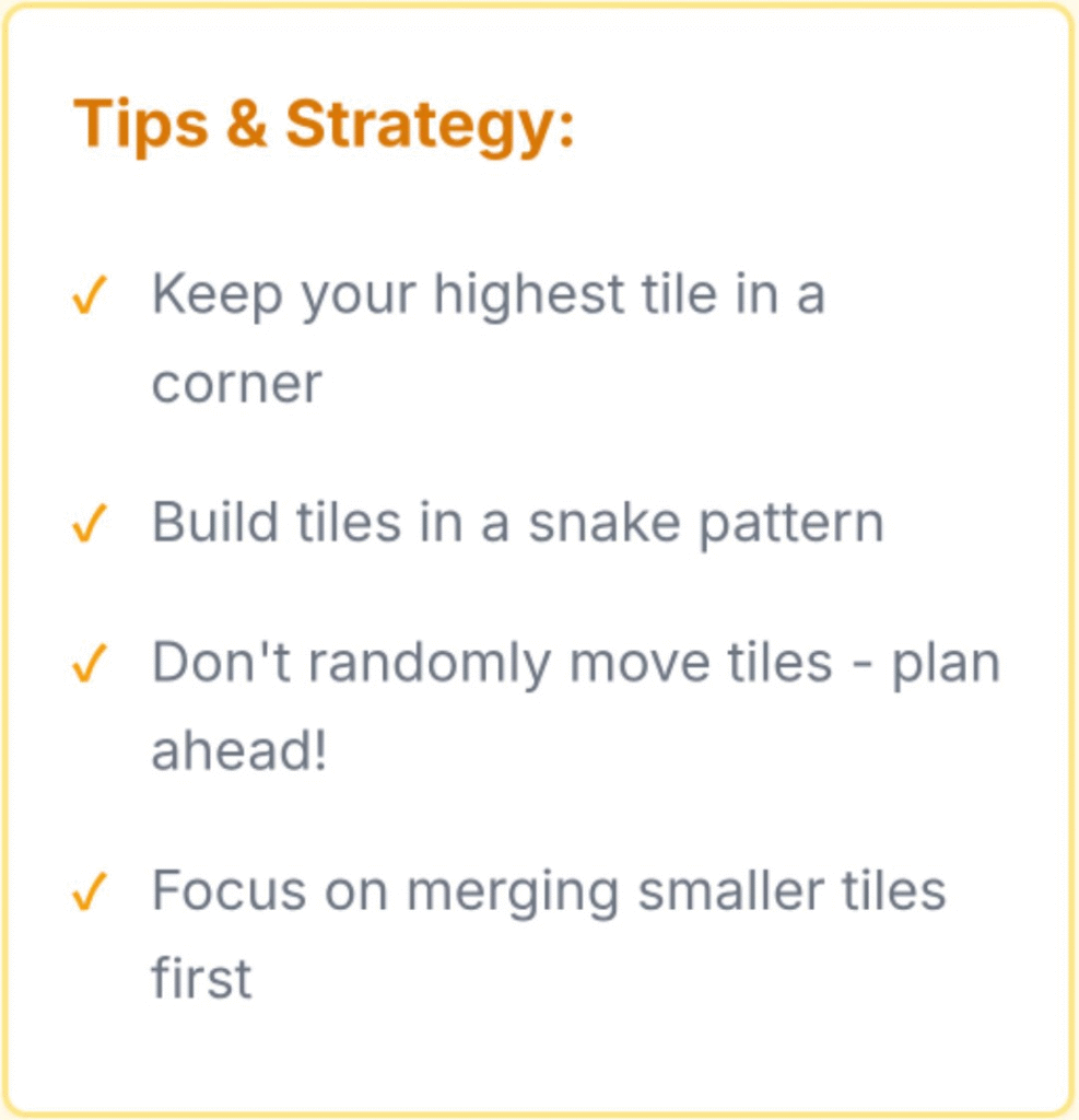 This is the golden rule. Pick one corner—usually bottom-left or bottom-right—and ALWAYS keep your biggest tile there. Everything else revolves around feeding tiles toward that corner.