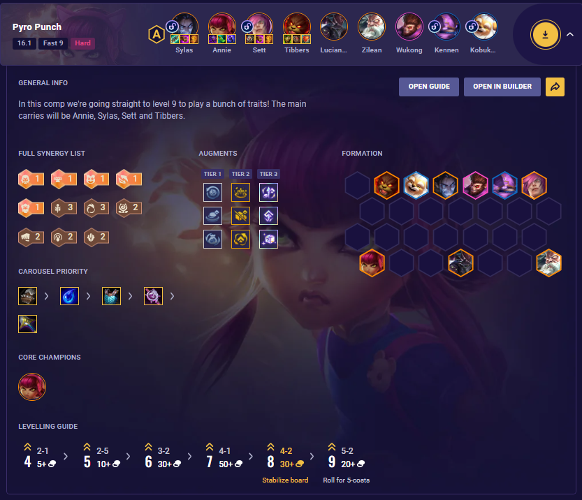 First, Tibbers Pyro Punch is a strong early- to mid-game pressure comp. With multiple melee units, the team dominates close-range fights. Most importantly, Tibbers provides a durable frontline that prevents quick collapses. In addition, Sett and Sylas deal consistent damage.